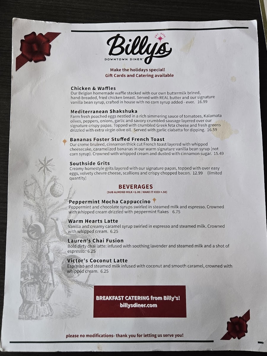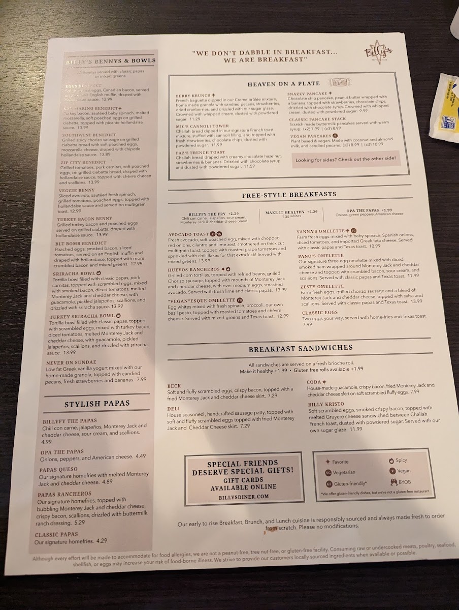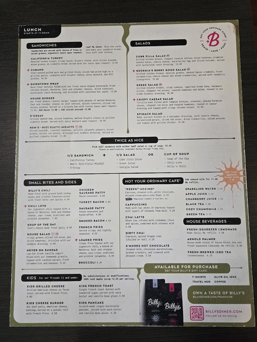 The ambiance at Billy's is modern yet cozy, creating an inviting space to enjoy the carefully curated dishes. With friendly staff and quick service, even during peak hours, it's no wonder this diner receives glowing reviews. Whether you're a local or just visiting, Billy's is a culinary gem you won't want to miss!